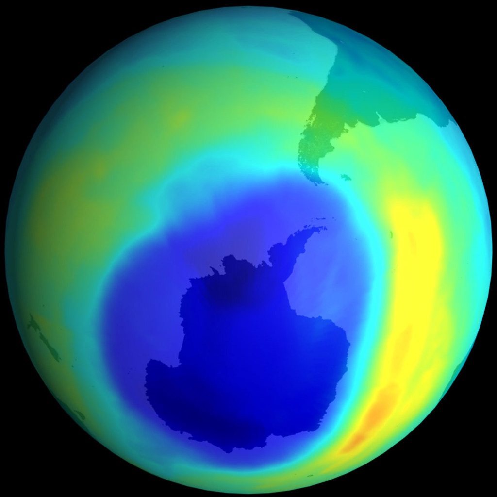 - При общем истончении слоя дыра должна возникать первой над Южным полюсом