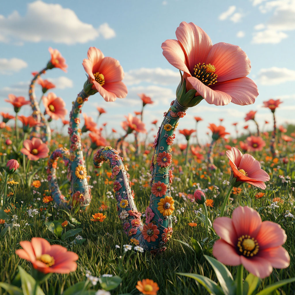 Но даже среди цивилизаций на белковой основе можно было встретить что-нибудь «эдакое». В самом начале своего «лазания» по пространствам, Светлану поразила планета-Земля, на которой росли огромные цветы невероятных для нашей «старушки» форм. Но самое удивительное было в том, что эти фантастические цветы невероятных форм… были поющими. Поющими, в прямом и переносном смысле этого слова. «Поляна» из этих цветов исполняла невероятной красоты мелодию, которую просто не с чем сравнить на Земле. В какой-то степени эту музыку можно сравнить, разве что, с органной, только поющие цветы образовывали собой живой «орган» из десятков тысяч звучащих «труб». И это звучание цветов не было какофонией, а неземной по своей красоте гармонией невероятных звуков. Эта поющая планета просто потрясла Светлану. Но ещё больше её потрясли поющие пространства, на которые мы наткнулись за чёрной пропастью. Конечно, пространства не пели в привычном для нас понимании этого слова. Они пульсировали в разных ритмах, выбрасывая при этом сгустки разных материй, которые, накладываясь друг на друга, создавали вселенскую «цветомузыку».