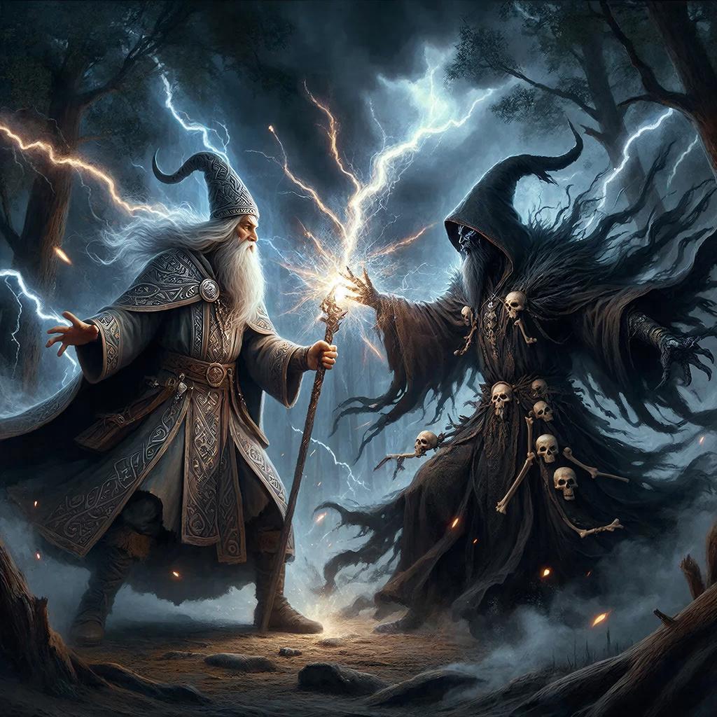 Сражение магов, а точнее, иерархов, не похоже на какое-либо другое сражение. Это в сказках и легендах боевые маги изображаются, как заклинатели, которые своими заклинаниями призывают к силам огня, воздуха, воды и земли, материализуют оружие, которое за них сражается, или создают волшебное оружие, с которым сражаются сами. Но это в основном выдумки режиссёров, которые стараются донести бой магов максимально эффектно для зрителей. Сражение магов посредством заклинаний — это весьма примитивный уровень, так как использующие заклинание, в подавляющем своём большинстве не понимают и не знают, что происходит во время произнесения заклинания. Кстати, эта причина была основной, приведшей к полному поражению волхвов в противостоянии с чёрными магами, которые пришли в Киевскую Русь под видом крестителей. Псевдосвященники, блокируя действия волхвов, дискредитировали их действия на глазах сородичей, убеждая последних, что их «Бог» сильнее старых «Богов»! При этом, умело манипулируя толпой на уровне подсознания, эти чёрные маги доводили толпу до агрессивного состояния и направляли эту агрессию на своих противников — волхвов, не давая им опомниться от случившегося. И разъярённая толпа под воздействием чёрных магов зверски расправлялась с волхвами. Волхвами, которые были единственной силой, способной противостоять действиям чёрных магов — псевдокрестителей!
